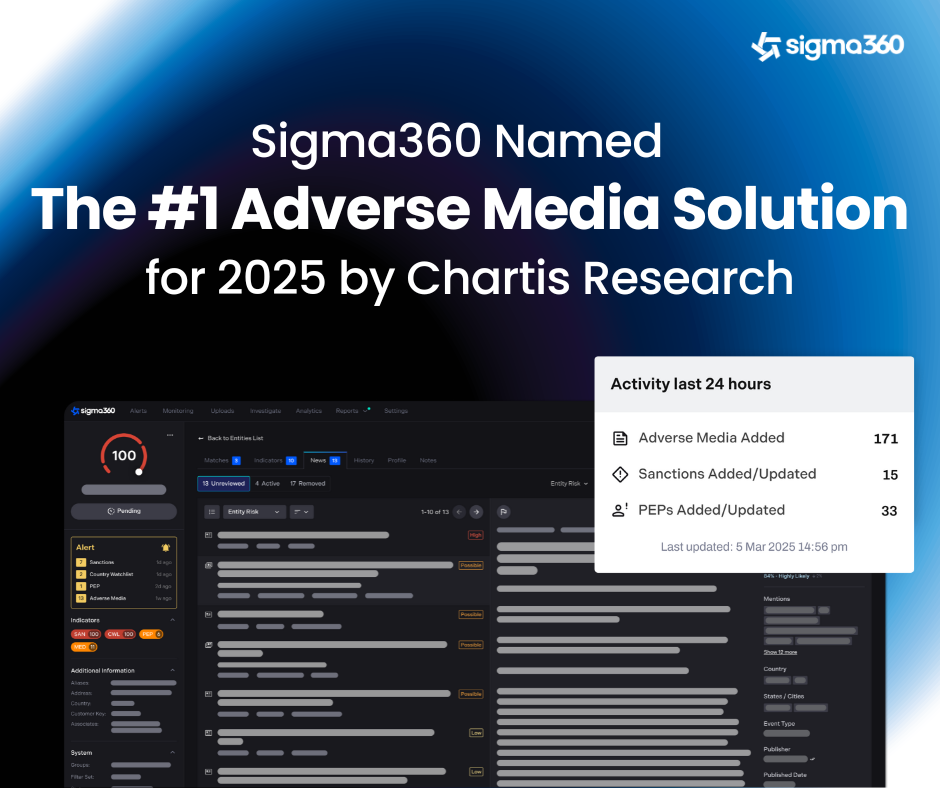 Sigma360®, the #1-rated Adverse Media Screening solution by Chartis Research in 2025, has announced...